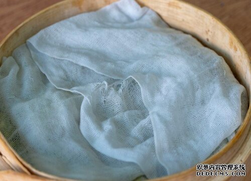 接著準備一個可以濾水的筐子,我是用的小蒸籠,先鋪上一層干凈的紗布,豆子倒進來后再鋪平整。